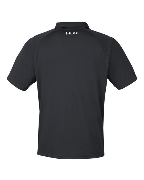 - HUK logo at top left sleeve