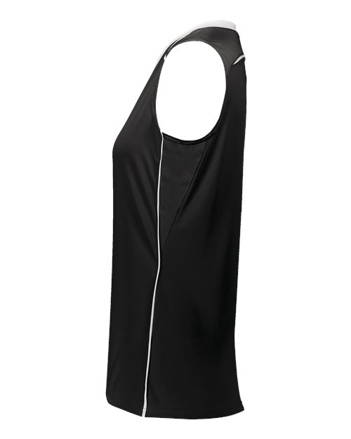 - 90/10 polyester/spandex wicking mesh back yoke and side inserts with color secure® technology that helps prevent dye migration